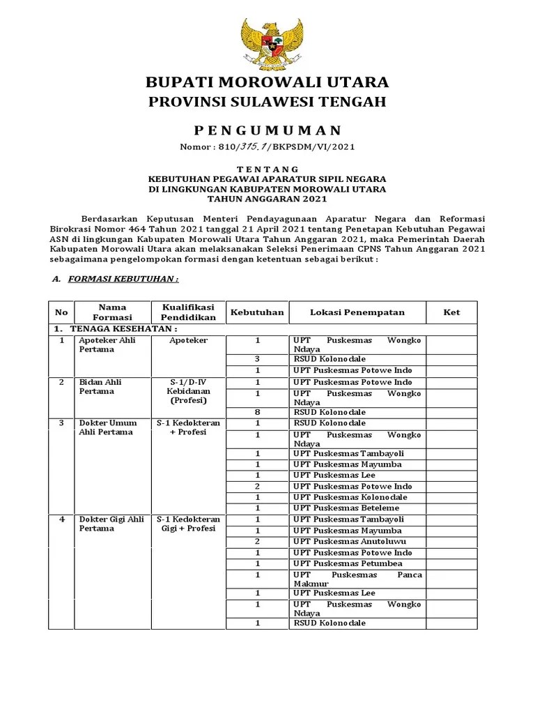 Surat Lamaran Cpns Morowali Utara 2021 - Pengumuman Cpns Kabupaten Morowali 2021 Lulusan Sma Smk D3 S1 S2 Soal Skb - Setelah dilaksanakan verifikasi terhadap berkas lamaran dan dokumen yang .